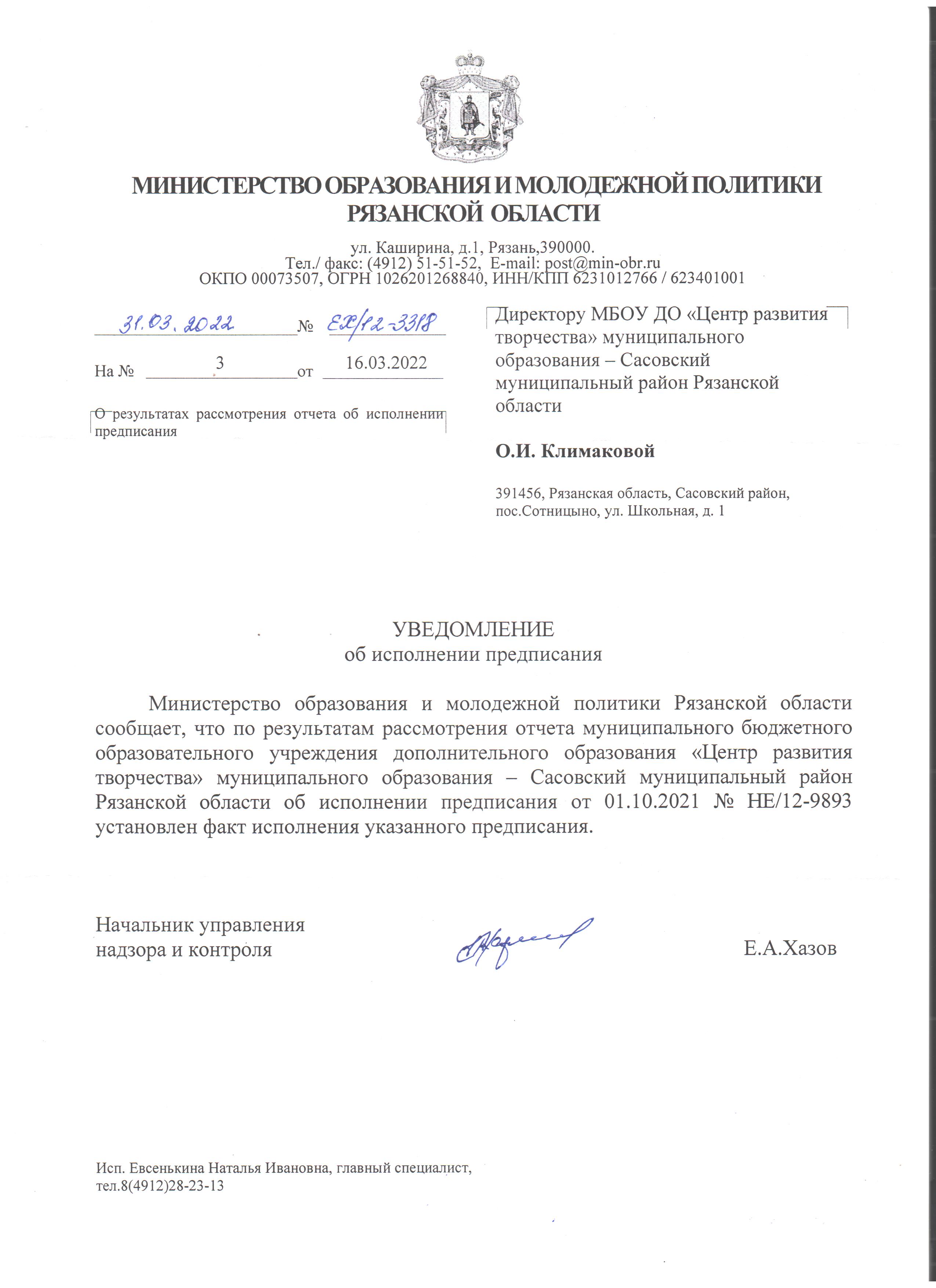 Документы - МБОУ ДО «Центр развития творчества» муниципального образования- Сасовский муниципальный район Рязанской области